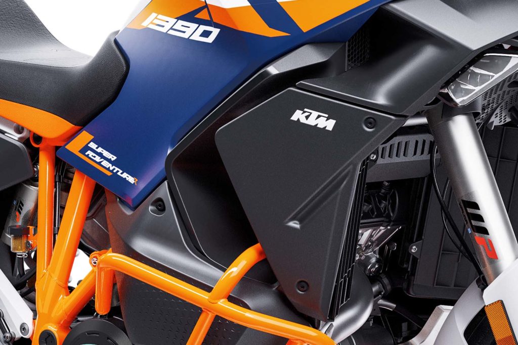 Σημαντική σχεδιαστική πινελιά, για την οδήγηση στο χώμα, είναι η τοποθέτηση μικρής ζελατίνας που φαίνεται πως δεν εμποδίζει ούτε στο ελάχιστο τις κινήσεις αλλά και την ορατότητα του αναβάτη. Φυσικά αυτό αναμένεται να έχει ως “παρενέργεια” τη μειωμένη κάλυψη από τον αέρα ωστόσο σίγουρα το 1390 Super Adventure R απευθύνεται σε πιο “σκληροπυρηνικό” κοινό. Εντελώς νέος, και υψηλής απόδοσης σύμφωνα με την KTM, είναι ο προβολές LED,, που “κάνει τη νύχτα μέρα” και ο οποίος συνδυάζεται με νέα cornering lights.