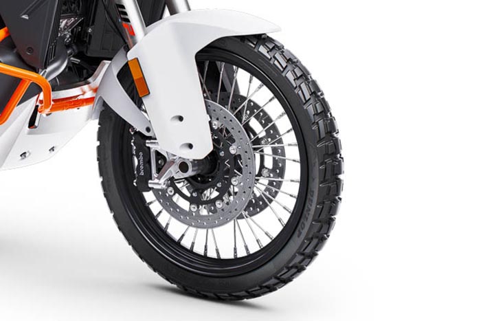 Ως μοτοσυκλέτα που υπόσχεται έντονες συγκινήσεις στο χώμα, χρησιμοποιεί ακτινωτούς τροχούς (tubeless) 21 (μπροστά) και 18 ιντσών (πίσω). Τα ελαστικά πρώτης τοποθέτησης είναι τα Bridgestone AT41 σε διαστάσεις 90/90-21 και 150/70-18.