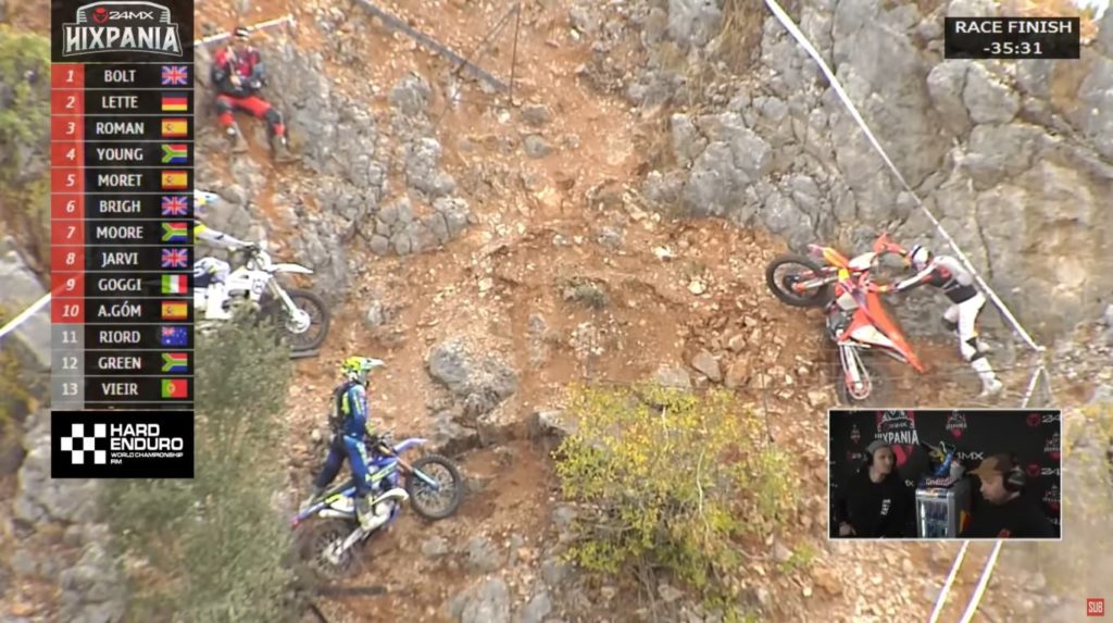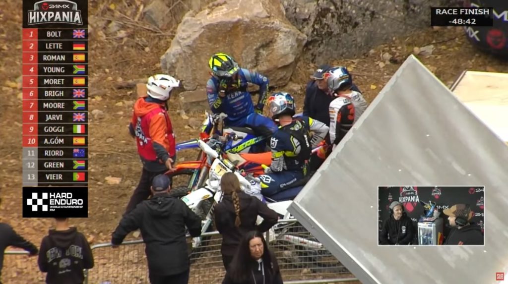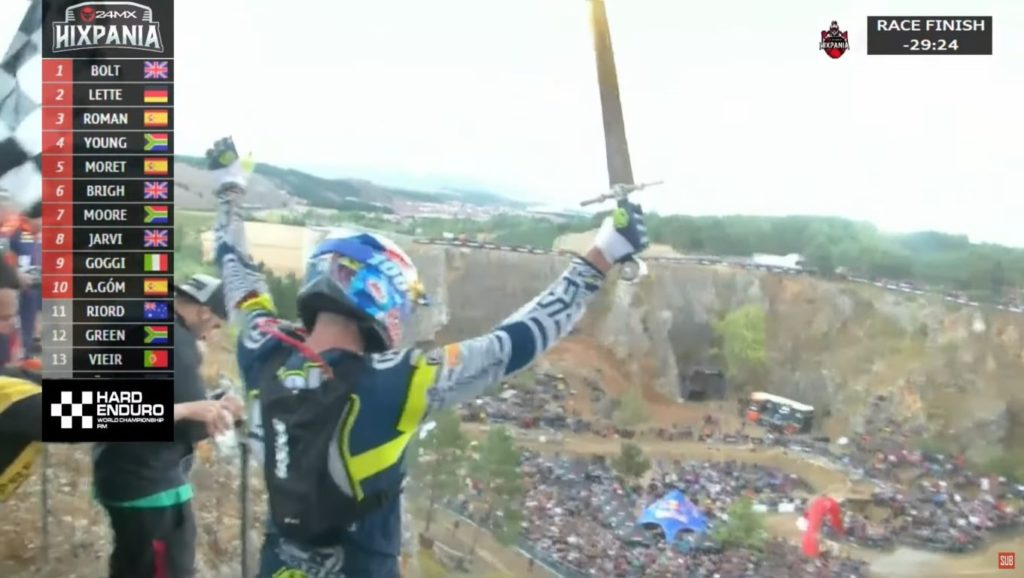 Οι δύο κλασικοί πρωταγωνιστές των τελευταίων ετών, ο Manuel Lettenbichler (ΚΤΜ 300) και ο Billy Bolt (Husqvarna 300) ήταν και πάλι αυτοί που έκλεψαν την παράσταση και στο Hixpania, Μετά από πολλά αλληλοπροσπεράσματα και δύο ώρες αγώνα κανείς δεν κατάφερε να απομακρυνθεί περισσότερα από 15 δευτερόλεπτα, με τον Bolt να ολοκληρώνει πρώτος τους εννιά γύρους του αγώνα.