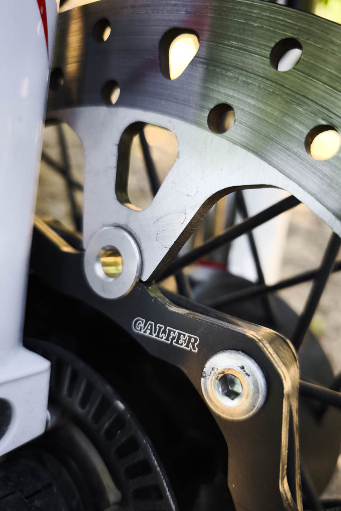 Μεγάλη εντύπωση προκαλεί η τοποθέτηση της εξάτμισης (καταλύτη και τελικού) κάτω από τον κινητήρα (και το μπροστινό μέρος του ψαλιδιού), κάτι που αποφεύγεται σχεδόν σε όλες τις off-road μοτοσυκλέτες (ώστε να είναι όσο το δυνατόν μεγαλύτερη η απόσταση από το έδαφος) αλλά που σίγουρα θα κρατήσει προστατευμένο το σύστημα σε περίπτωση πτώσης ενω΄παράλληλα βοηθάει στη διατήρηση χαμηλού κέντρου βάρους.