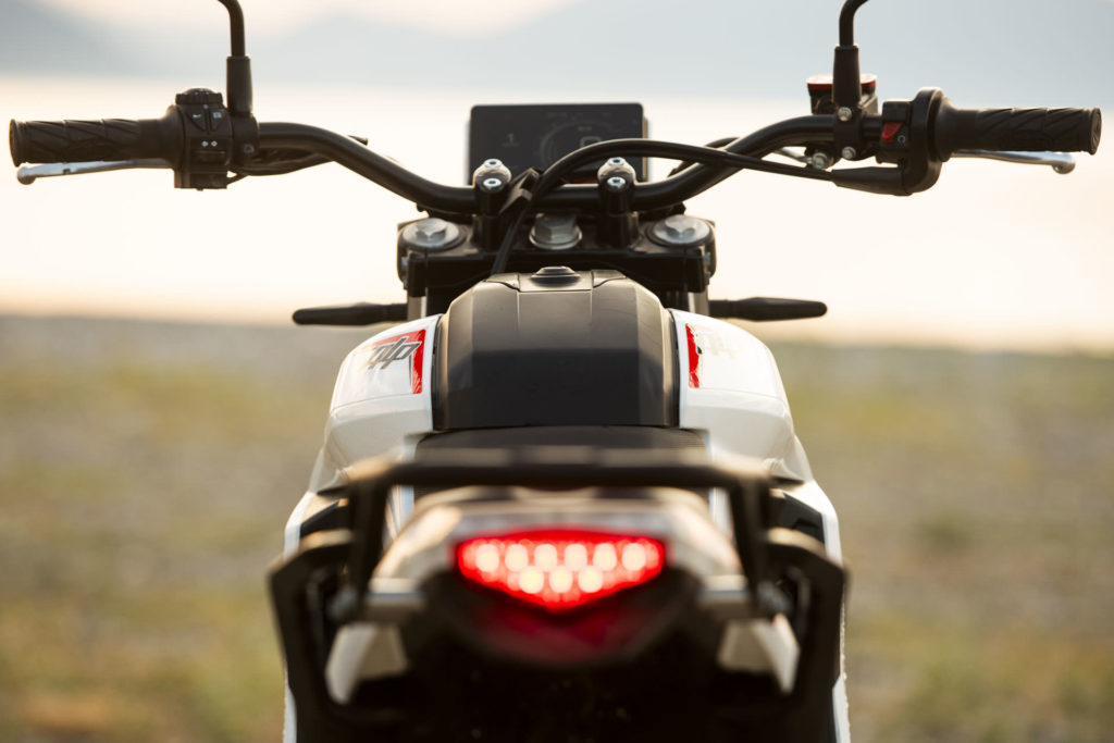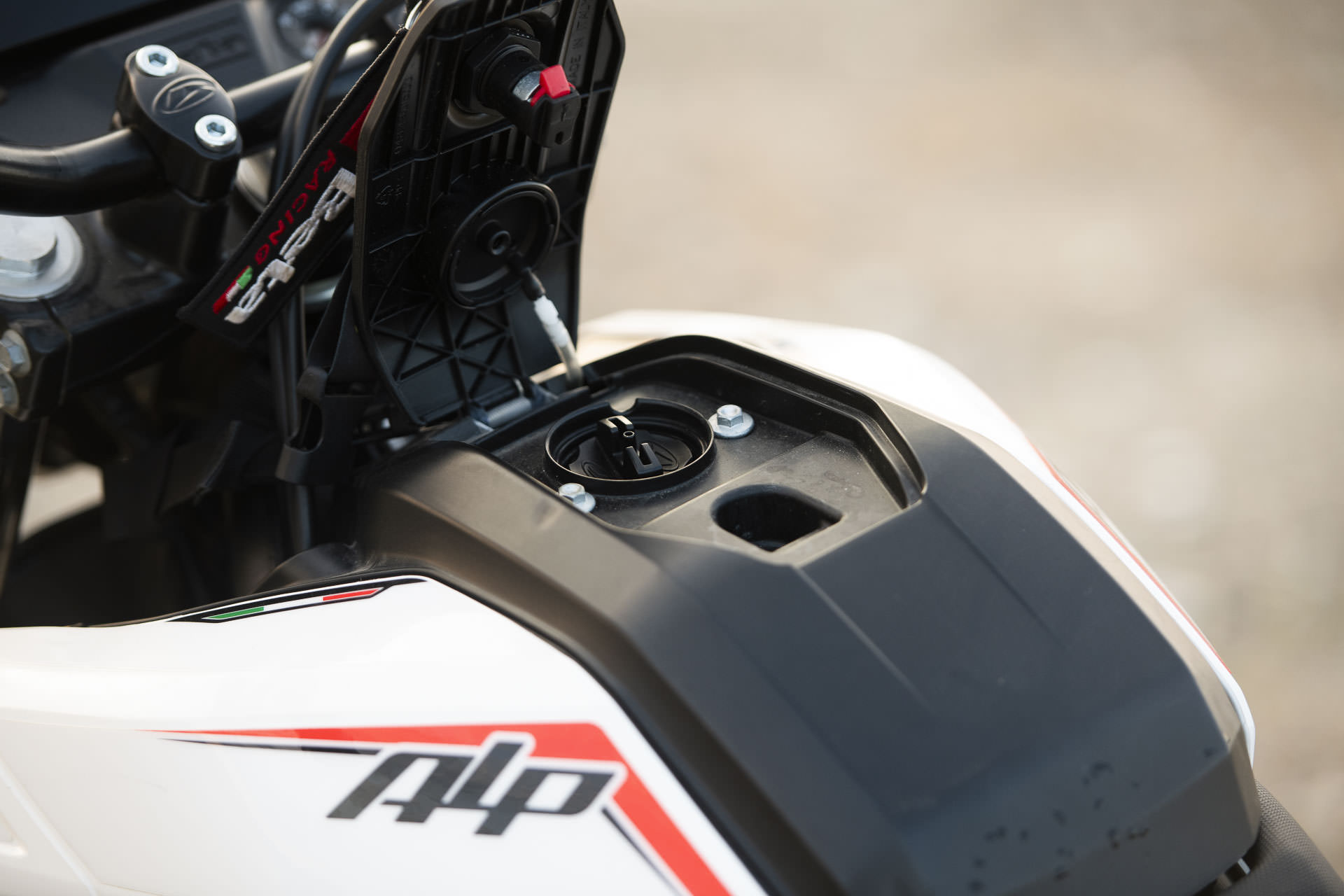 Ενώ οι σύγχρονες τάσεις “φορτώνουν” με εξοπλισμό και όγκο τις περισσότερες μοτοσυκλέτες διπλής χρήσης, το Alp πάει “κόντρα στο ρέμα” και κάνει αισθητή την παρουσία του χάρη στον λιτό σχεδιασμό του. Μοντέρνες γραμμές στα λίγα πλαστικά, λεπτή σιλουέτα και ομοιόμορφη κατανομή όγκου και μάζας, από μπροστά μέχρι πίσω, είναι αυτά που τραβούν το βλέμμα. Τα led φωτιστικά σώματα, το συμβατικό (όχι USD) πιρούνι, το χαμηλό μπροστινό φτερό, το κομψό τελικό της εξάτμισης και ο ιδιαίτερος λασπωτήρας-βάση πινακίδας κάνουν δημιουργούν ένα ελκυστικό σύνολο που σίγουρα δεν περνάει απαρατήρητο.