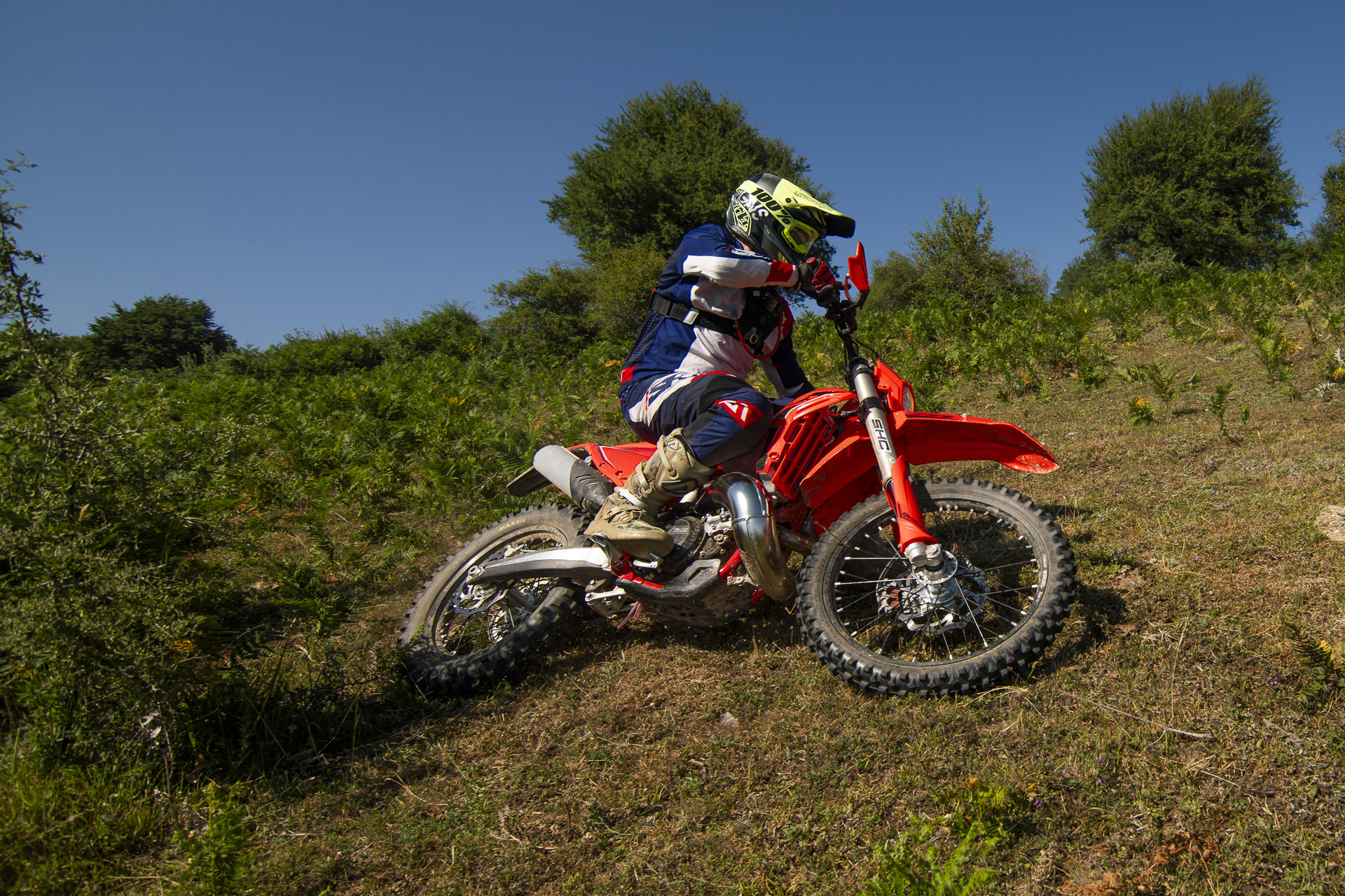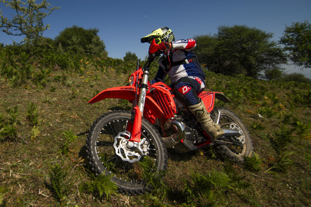Ξεκινώντας την εντουροδιαδρομή του Mamali Festival αυτό που μας έκανε κατευθείαν θετική εντύπωση, είναι το πόσο εύκολα προσαρμόζεσαι σε ένα σύγχρονο, δίχρονο enduro. Ακόμα και αν έχουν περάσει αρκετοί μήνες από την προηγούμενη “δίχρονη” βόλτα σου, θα νιώσεις αμέσως “σαν το σπίτι σου”. Το λέμε αυτό γιατί υπήρχε μία μεγάλη περίοδος κατά την οποία η ωμή απόδοση των μεγάλων δίχρονων κινητήρων, σε enduro μοντέλα, είχε κάνει εξαιρετικά απαιτητική την οδήγησή τους. Πλέον όπως τα περισσότερα σύγχρονα μοντέλα, έτσι και το RR X-Pro, δεν έχει κανέναν πρόβλημα να γουργουρίζει για ώρες σε αργά, ανηφορικά τεχνικά κομμάτια χωρίς ίχνος δυσανεξίας (μπούκωμα ή υπερθέρμανση) ακόμα και με πρώτη σχέση στο κιβώτιο, μια επιλογή που στο παρελθόν ήταν κάτι μεταξύ “αχρείαστης και απαγορευτικής”. Αντ’ αυτού είναι απόλυτα απολαυστικό και σε εμπνέει να το κάνεις για όσο αντέχεις ή όσο το απολαμβάνεις.
