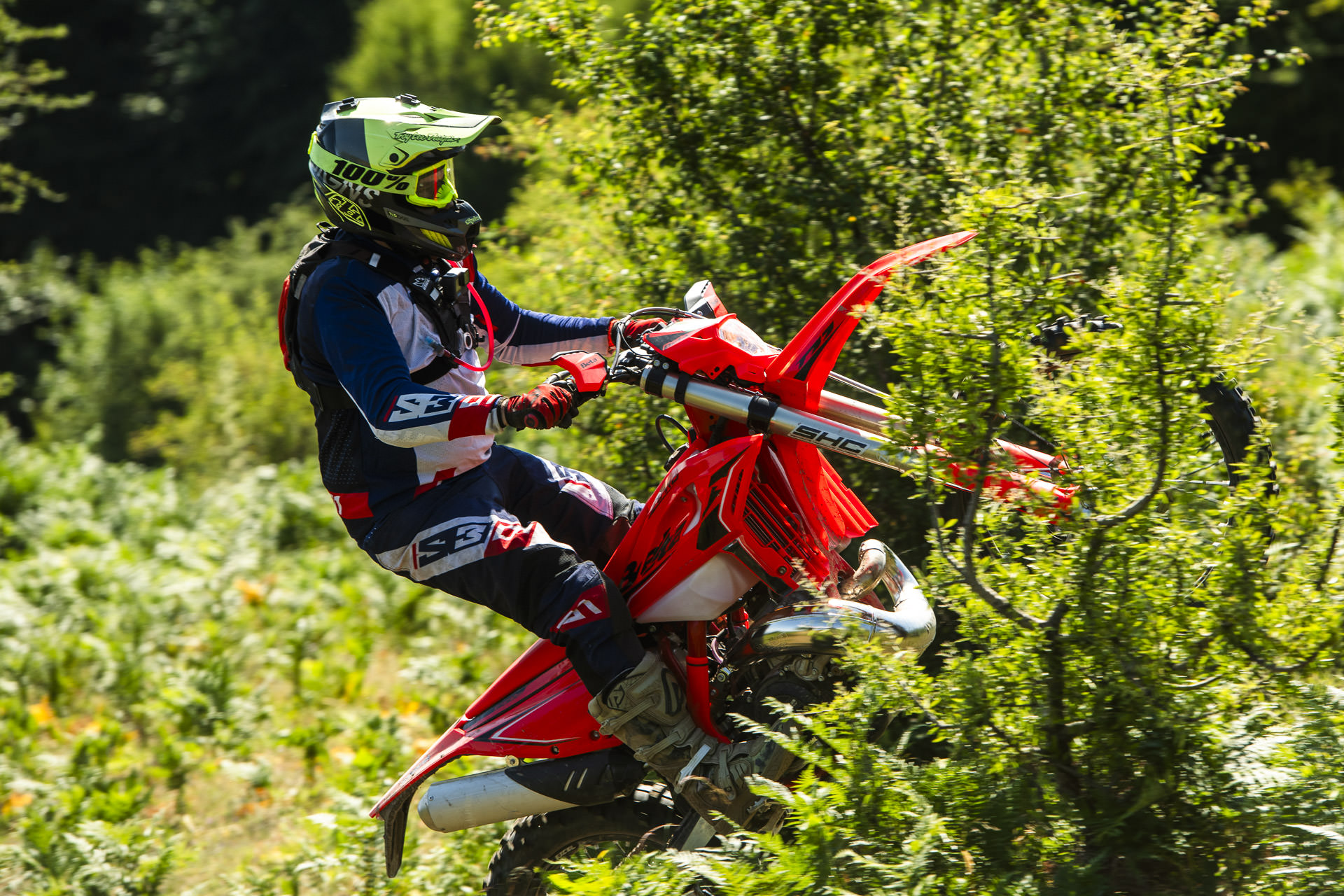 Σε αυτές τις συνθήκες “βομβαρδισμένου τοπίου”, όρθιος στα μαρσπιέ μπορείς να ελίσσεσαι με χαρακτηριστική ευκολία ακόμα και στα πιο σφιχτά μονοπάτια, ενώ μόλις κάτσεις στη σέλα καταλαβαίνεις πως το χαμηλότερο κέντρο βάρους (λόγω μειωμένου ύψους) και η αψεγάδιαστη γεωμετρία δρουν ως σύμμαχός σου σε κάθε αλλαγή κατεύθυνσης. Ήταν τόσο έντονο αυτό το συναίσθημα που κατά τη διάρκεια της φωτογράφησης δοκιμάζαμε να πλαγιάσουμε όλο και περισσότερο σε off-camber στροφές πετυχαίνοντας, έστω και με μικρή ταχύτητα, μεγάλες κλίσεις με απίστευτη ευκολία!
