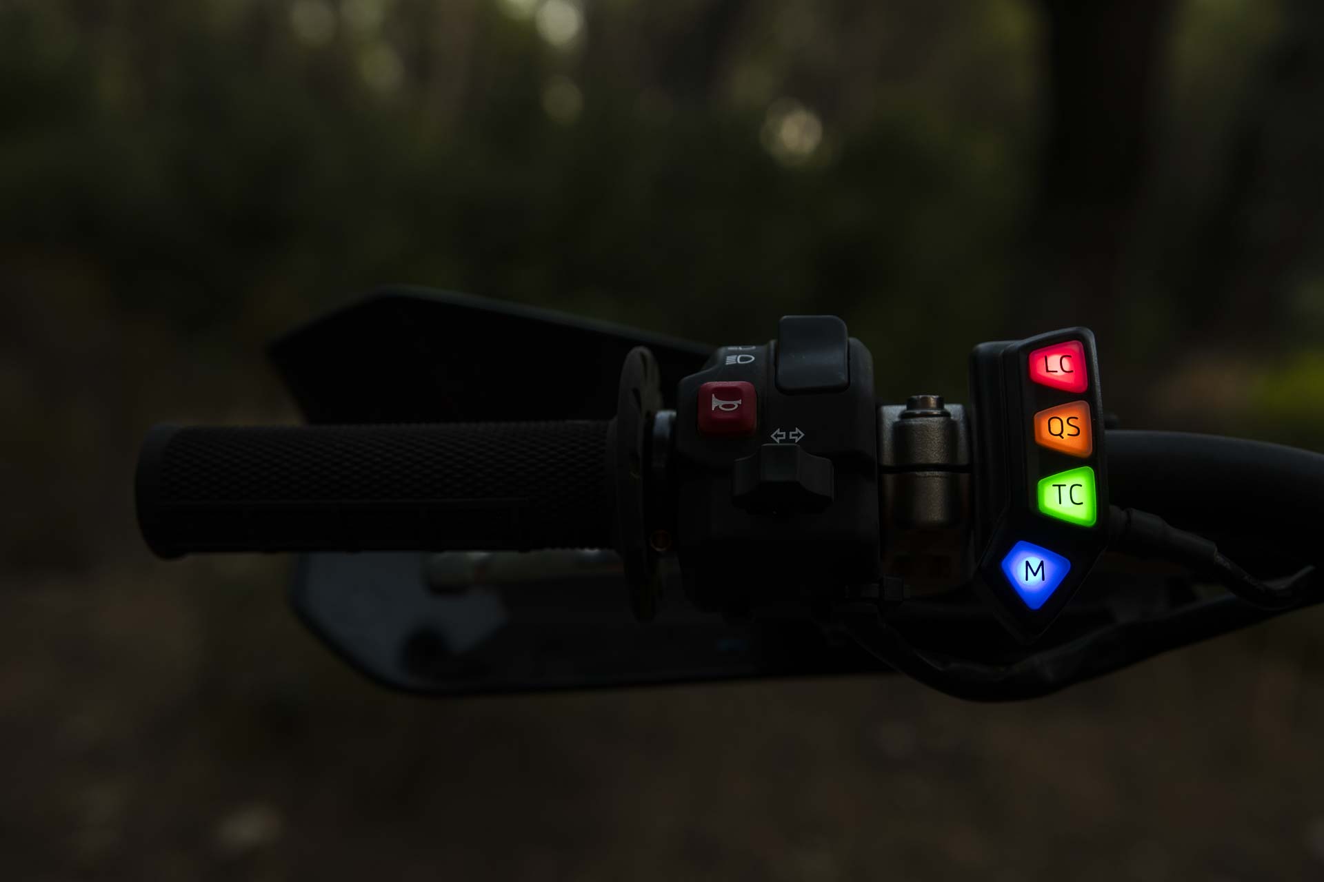 3. Εντυπωσιακός ο διακόπτης με τα ξεχωριστά φωτιζόμενα κουμπιά για Launch control (κόκκινο), Quickshifter (πορτοκαλί), Traction control (πράσινο) και ένδειξη της επιλεγμένης χαρτογράφησης (μπλε).