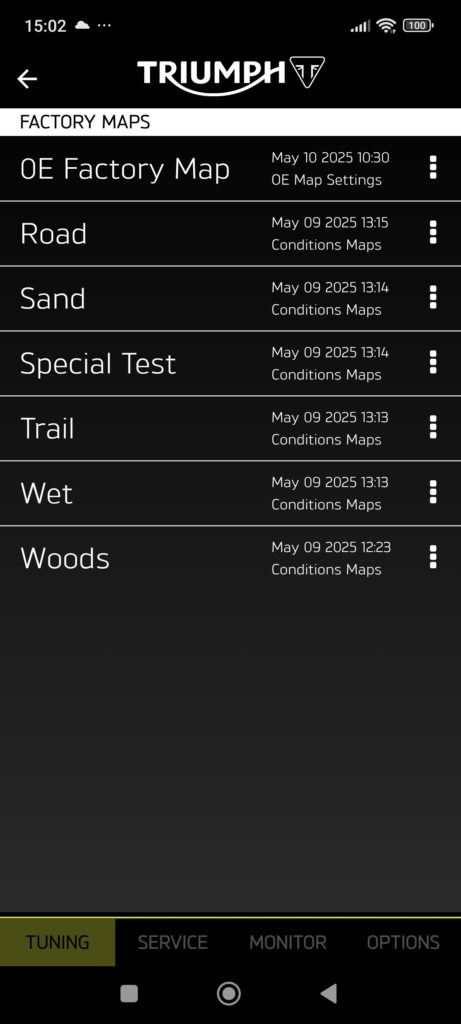 Με την εξτρα Wi-Fi μονάδα της Triumph, ο αναβάτης μπορεί να συνδεθεί μέσω της εφαμογής MX Tune Pro και να τροποποιήσει πολλές παραμέτρους.