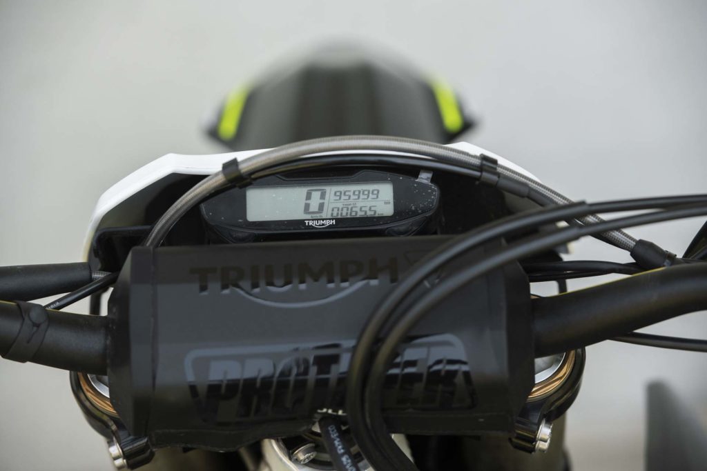 Για τους περισσότερους, μόλις πέσει το σκοτάδι έρχεται και η ώρα για τον απολογισμό της ημέρας. Στη σέλα του TF 250-E όμως έχεις αρκετό χρόνο ακόμα οδήγησης καθώς το πολύ δυνατό μπροστινό LED φως “κάνει τη νύχτα μέρα” και σου επιτρέπει να συνεχίσεις για ακόμα περισσότερη ώρα τη βόλτα σου ή ακόμα και την προπόνησή σου. Τότε συνειδητοποιείς πως η κίνηση της Triumph δεν είναι ένα απλό “πυροτέχνημα”. Έχει μελετηθεί σωστά, και με το “καλημέρα” έχει να προτείνει κάτι πολύ δυνατό και ιδιαίτερο, που σίγουρα θα τύχει θερμής υποδοχής.