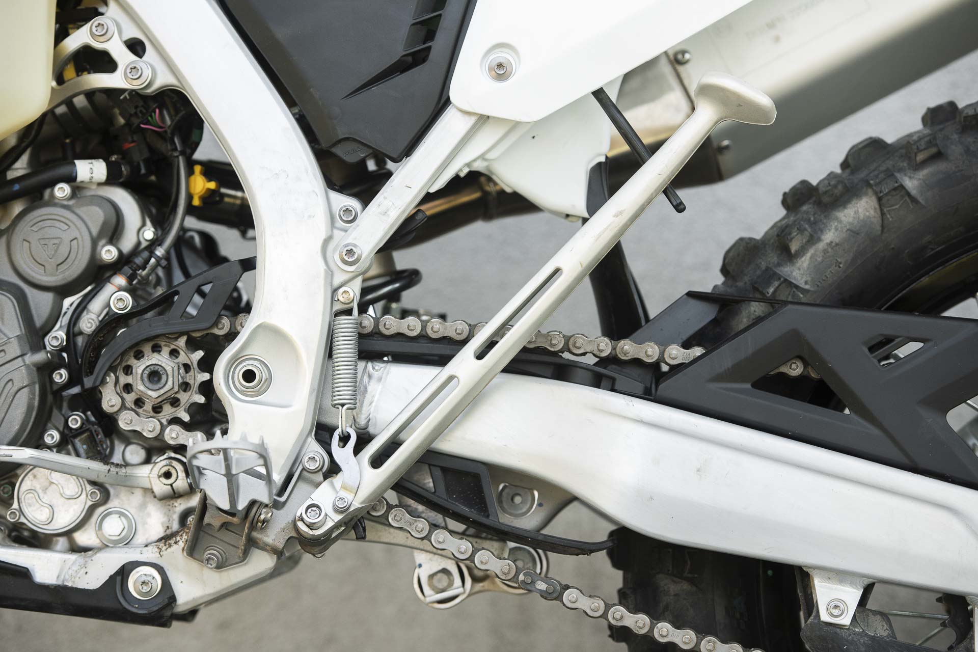 Πολύ προσοχή χρειάστηκε να δώσουμε στο σετάρισμα της μοτοσυκλέτας. Στις αρχικές ρυθμίσεις των αναρτήσεων ήταν αρκετά νευρική, και δεδομένου των συνθηκών στις οποίες την οδηγήσαμε (ξερό τερέν χωρίς καθόλου πρόσφυση) χρειάστηκε να ψαχτούμε λίγο περισσότερο από όσο συνηθίζουμε. Μαλακώνοντας σημαντικά τις αποσβέσεις συμπίεσης, κάνοντας πιο γρήγορες τις επαναφορές (σε πιρούνι και αμορτισέρ) και δίνοντας λίγο περισσότερο sag στο αμορτισέρ (στο στατικό sag φτάσαμε μέχρι 45-46mm1 ενώ αρχικά είχε 40mm), η κατάσταση βελτιώθηκε δραματικά.
