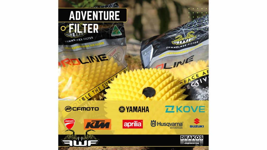Εκτός από τα κορυφαία φίλτρα για μοτοσυκλέτες off-road, η FunnelWeb διαθέτει προτάσεις και για τα δημοφιλέστερα μοντέλα Adventure. Αυτές περιλαμβάνουν την αντικατάσταση του νορμάλ φίλτρου αέρα αλλά και τη δυνατότητα τοποθέτησης προ-φίλτρου που αυξάνει δραματικά το διάστημα αποτελεσματικού φιλτραρίσματος πριν χρειαστεί καθάρισμα ώστε να απολαμβάνεις την περιπέτεια της οδήγησης χωρίς να σε απασχολεί η κατάσταση του φίλτρου σου.