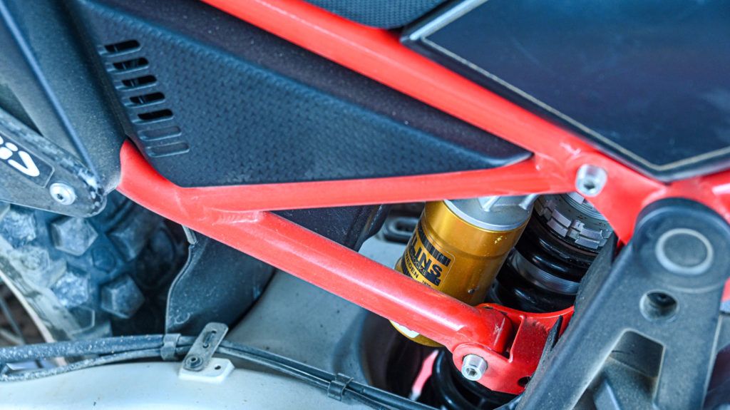 Η racing έκδοση του Tuareg χρησιμοποιεί ένα upside-down πιρούνι 48 χιλιοστών με διαδρομή 270 χιλιοστά, πλήρες ρυθμιζόμενο (προφόρτιση ελατηρίου, απόσβεση συμπίεσης και επαναφοράς), όπως πλήρες ρυθμιζόμενο είναι το αμορτισέρ που και αυτό προσφέρει μεγαλύτερη διαδρομή (285 χιλιοστά) όπως και το πιρούνι σε σχέση με τις στάνταρ αναρτήσεις.