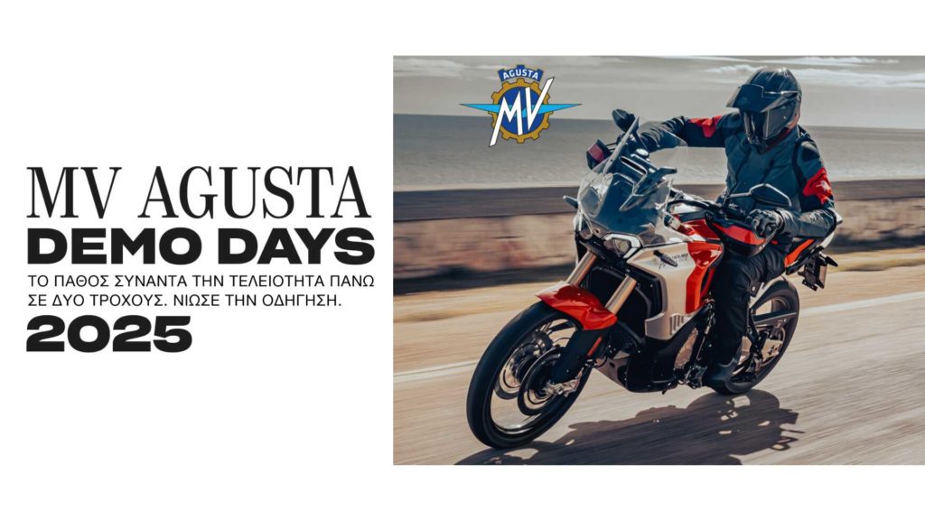Με αφορμή τα 80 χρόνια της MV Agusta, οι Demo Days συνοδεύονται από ειδικές επετειακές προσφορές σε επιλεγμένα μοντέλα, δίνοντας στους οδηγούς μια μοναδική ευκαιρία να γίνουν μέρος της εμβληματικής ιστορίας της μάρκας.