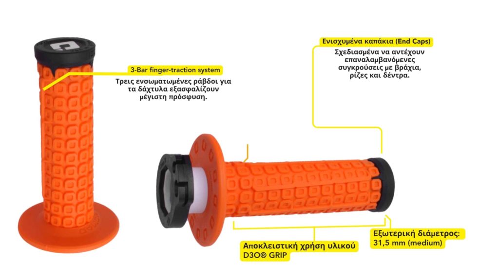 Η εταιρεία D3O είναι γνωστή για τα πορτοκαλί εύκαμπτα και μαλακά προστατευτικά της που σκληραίνουν στιγμιαία σε περίπτωση πρόσκρουσης, απορροφώντας και διαχέοντας την ενέργεια με εντυπωσιακό τρόπο. Τα τελευταία χρόνια έχει εδραιωθεί στον χώρο της μοτοσυκλέτα και τώρα, χάρη στην ODI, αυτή η τεχνολογία περνάει και στα grip τιμονιού.
