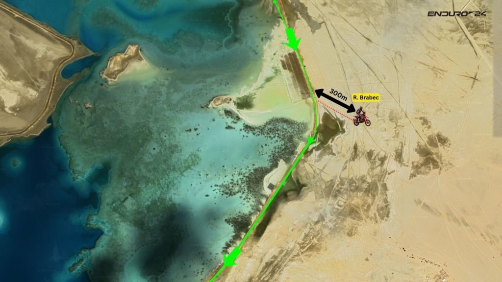 Στο 98,4km, της ειδικής, 7km πριν το τέλος, το road book οδηγεί τους αναβάτες σε μία αριστερή στροφή ενώ κυκλώνουν δεξιόστροφα μία λιμνοθάλασα. Σε εκείνη την περιοχή υπάρχουν πολλές ροδιές προς όλες τις κατευθύνσεις και o Brabec ακολουθεί λανθασμένη πορεία για περισσότερα από 300m. Στην επιστροφή του Brabec προς τη σωστή κατεύθυνση, ο Benavides είχε ήδη αποκτήσει οπτική επαφή με την κατάσταση και αποφεύγει το λάθος, ξέροντας φυσικά πως ήδη είχε μειώσει τη διαφορά στα λίγα δευτερόλεπτα.