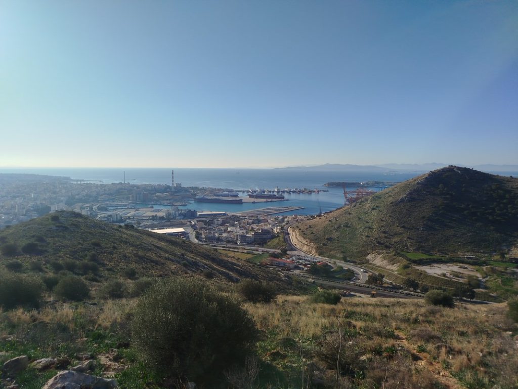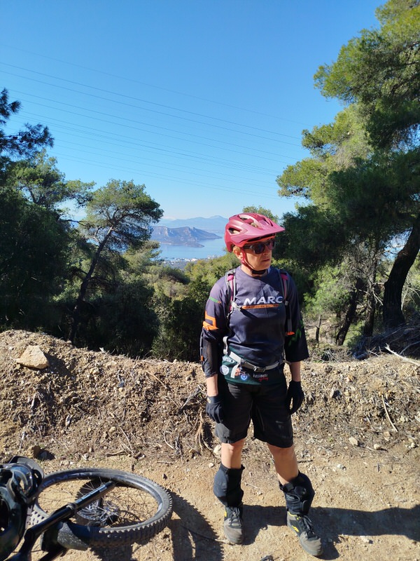 Η εκκίνηση είχε οριστεί στις σιταποθήκες στην Νίκαια στις 08:45, ωστόσο φτάσαμε πανικόβλητοι με τον Στέργιο στις 09:00 και εκεί δεν βρίσκονταν κανένας! Έπεσαν τα τηλ και συμπεράναμε ότι δεν είχαμε αργήσει, αλλά η φάση ήταν cool. Και όντως, μαζευτήκαμε και ξεκινήσαμε για την πρώτη ανάβαση στις 09:30, καμιά δεκαριά αναβάτες με ηλεκτρικά και συμβατικά ποδήλατα. Τι ωραία να μην βιάζεσαι. Χα, και ειδικά αν σε περιμένουν τρεις κόντρα τοίχοι στο πρώτο χιλιόμετρο! Για να πω την αλήθεια την έσπρωξα την τελευταία από τις τρεις, ε, για να μην καούμε και με το καλημέρα… Στην συνέχεια η ανάβαση γίνεται στρωτή και ευχάριστη με όμορφη θέα, αλλά χωρίς δάσος. Πάντως το γεγονός ότι συναντήσαμε συνεργεία που έκαναν αναδάσωση μας έφτιαξε ακόμη περισσότερο την διάθεση.