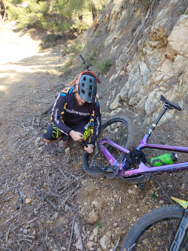 Μπουκωμένοι βασιλόπιτα κατηφορίσαμε το Τριπάκι Trail (αυτό που σπρώχνουμε στην ανάβαση για να κάνουμε το DH Trail) και στη συνέχεια τρυπώσαμε στο πρώτο part του Μην Λες Ψέματα Trail. Μια ζόρικη ανηφόρα και τσουπ βρεθήκαμε στην εκκίνηση του πετρωτού Παπαφλέσας Trail με τα χρώματα ενός υπέροχου δειλινού να μας μαγεύουν. Κερασάκι στην τούρτα το σούπερ γκαζερό Cousto Trail με τον Άλεξ Λογγινίδη να ορμάει με τα όλα για το ΚΟΜ! Αχ, αυτό το σκασμένο πίσω λάστιχο, το κράτησε μόλις 1’’ μακριά από τον στόχο του, αλλά δεν του στέρησε πλατύ το χαμόγελο.