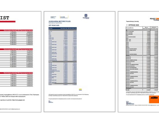 Δημοσιεύτηκε ο ανανεωμένος τιμοκατάλογος και περιλαμβάνει τα νέα μοντέλα enduro και motocross.