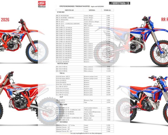 Η Beta Hellas εξέδωσε νέο τιμοκατάλογο με τις τιμές των νέων μοντέλων enduro.